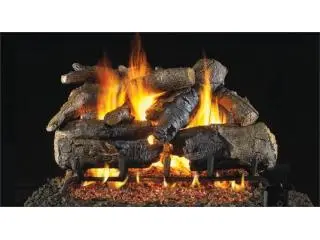 Big ambiance, zero effort! The Charred American Oak 30" Vented Gas Log Set with G45 Triple T Series Burner by RH Peterson Real Fyre delivers a stunningly realistic wood-fire experience without the hassle of real firewood - perfect for living rooms, dens, or master suites. Artisan-crafted logs recreate the intricate bark detail and deep charred coloration of real wood, while the G45 Triple T Burner accentuates front ember presentation for a full-bodied, glowing flame that dances through the entire log set. The complete package includes ceramic refractory logs, custom grate, glowing embers, sand, connector kit, and damper clamp - everything needed for a seamless fireplace upgrade. Reinforced steel rods inside each log ensure long-lasting durability with minimal chipping or breaking.