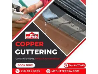 Protect your investment with copper gutters built to last for generations. Offering unmatched strength, natural rust resistance, and timeless curb appeal, MT Gutters delivers expert copper gutter installation in San Antonio for lasting protection against harsh Texas storms. Schedule your consultation today.