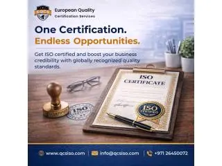 European Quality Certification Services provides ISO certification in Dubai with streamlined processes and trusted compliance support. We deliver clear documentation, audits, and verification customized to your business needs without unnecessary delays. Our team provides accurate evaluation and transparent certification processes aligned with international credibility standards. We focus on efficiency, compliance readiness, and smooth certification journeys for organizations across various industries. Our services simplify complex requirements and provide complete certification support from the start to approval stages. We maintain accuracy, reliability, and professional standards while delivering recognized certification solutions that build trust and business growth. Contact European Quality Certification Services today to obtain ISO certification in Dubai.
