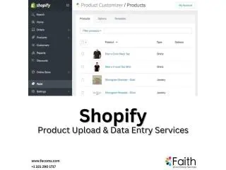 Managing product uploads, pricing, and inventory on Shopify can get overwhelming. Faith eCommerce Services provides Shopify product entry services that keep your catalog clean and consistent. From bulk uploads to detailed product info, we handle it all—saving you time and helping your store run smoothly.