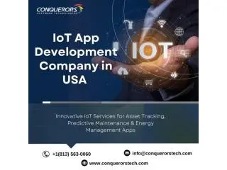 As a trusted IoT App Development Company in USA, Conquerors Technologies develops scalable applications that connect devices, systems, and users through intelligent IoT ecosystems. We focus on secure communication, data accuracy, and performance optimization. Our IoT apps support business growth across multiple industries.