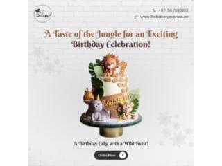 The flavors of the cake might vary from traditional chocolate and vanilla to more unusual ones like passionfruit, coconut, or red velvet, depending on personal choice. The Bakery provides Jungle safari cake. This cake would be a great focal point for a birthday celebration with a safari theme!