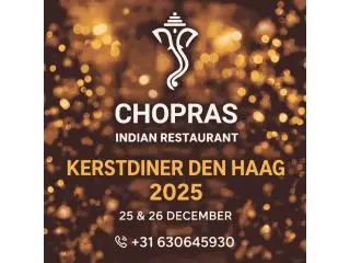 Maak van jouw kerst extra bijzonder met een smaakvol kerstdiner Den Haag bij Chopras Indian Restaurant. Reserveer op tijd en vier kerst samen met ons. Bel nu +31 630645930 en verzeker jezelf van een onvergetelijk kerstdiner in Den Haag tijdens Kerst 2025.