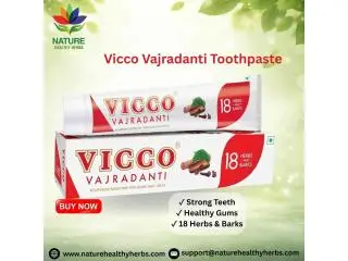 Vicco Vajradanti Toothpaste is a personal care essential, enriched with 18 natural herbs to support strong, healthy teeth and gums. This Toothpaste helps relieve toothaches, prevent cavities, and improve overall dental health. It reduces plaque, whitens yellow teeth, and is completely vegan. Discover the benefits of oral hygiene with Vicco Vajradanti Toothpaste, available at Nature Healthy Herbs. It also effectively treats gingivitis.