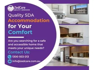 ZedCare Ability Services offers purpose-built Specialist Disability Accommodation (SDA) — fully accessible homes crafted for people with significant disabilities who require high levels of support and accessibility. Our SDA properties feature wide doorways, slip-resistant bathrooms, grab rails, step-free pathways and other modifications that enable residents with sensory, cognitive or mobility impairments to live safely and independently. As a registered provider under the National Disability Insurance Scheme (NDIS), ZedCare Ability Services supports eligible participants in navigating funding, assessment and placement. With experienced consultants and round-the-clock care, we deliver comfortable, secure and dignity-focused living solutions tailored to individual needs.