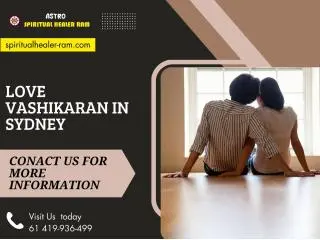 Specialized services are provided by Sydney's Love Vashikaran to draw in love, settle disputes in relationships, and win back former partners. Our skilled Vashikaran experts employ age-old methods to affect feelings, improve bonds, and remove obstacles in romantic relationships. With our tried-and-true love Vashikaran solutions in Sydney, you can take back control of your romantic life if you're dealing with heartbreak, miscommunications, or a lack of affection.