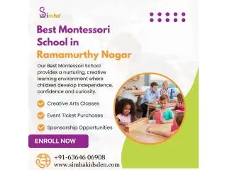 Simha Kidsden is known as the Best Montessori School in Ramamurthy Nagar, offering a child-centered approach to early learning. We focus on nurturing independence, creativity, and confidence through interactive and hands-on activities. Our Montessori-trained educators guide each child at their own pace, encouraging curiosity and critical thinking. Simha Kidsden provides a safe, stimulating, and joyful environment where learning becomes a natural and enjoyable experience. Our curriculum blends academic excellence with personal growth, helping children develop essential life skills for future success. Enroll your child today at Simha Kidsden and give them the perfect foundation for lifelong learning.