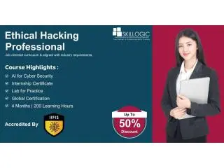 Leading ethical hacking institute in Hyderabad, SKILLOGIC delivers comprehensive training with live lab access and project-based learning. The course covers key topics such as network security, threat management, and compliance standards. Accredited by NASSCOM FutureSkills and IIFIS, the institute prepares learners for certifications and long-term career success.Course Details:Cloud Lab for Practice200 Learning HoursInternship Certificate4 Months TrainingCourse Link: skillogic.com/ethical-hacking-certification-course-hyderabad/