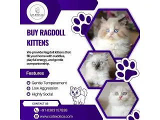 Cat Exotica presents you an opportunity to buy Ragdoll kittens in Bangalore, cherished for their gentle temperament, soft fluffy coats, and captivating blue eyes. We offer healthy, well-socialized kittens raised in a safe and secure environment, making sure they adjust smoothly to their new homes. Our experienced team supports you at every stage, from selecting the perfect kitten to learning about their nutrition, grooming, and daily care. We take care that all kittens are vaccinated, dewormed, and provided with complete health records for your assurance. Our aim is to pair every family with a Ragdoll kitten that fits seamlessly into their lifestyle. Reach out to Cat Exotica and bring your Ragdoll kitten home today.