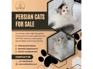 Cat Exotica presents charming Persian cats for sale in Bangalore, admired for their silky fur, striking eyes, and gentle nature. Our kittens are raised in a safe, clean, and affectionate environment, so that they grow up healthy, playful, and well-socialized. We specialize in offering purebred Persian cats that easily adjust to different home settings, whether families or individual. Our Persian kittens undergo regular health check-ups, deworming, and vaccinations to maintain their well-being. We are dedicated to maintaining superior breeding practices, balanced nutrition, and attentive care for every feline. Reach out to Cat Exotica today and bring home your delightful Persian kittens in Bangalore.