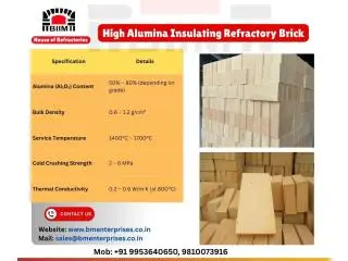 Key Factors to Consider Before Buying Insulation BricksFor sale - Faridabad (Haryana) - March 21, 2026To get the best thermal efficiency and long-term performance in high-temperature applications, it's important to choose the right insulation bricks. Before you buy from BM Enterprises, we suggest you consider three important things. First, check the ...