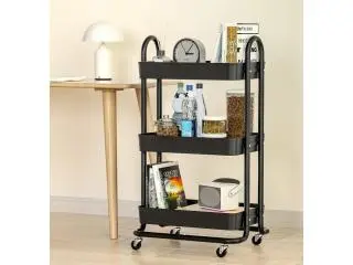 Artiss 3-Tier Kitchen Cart Storage Trolley with Wheels – Black