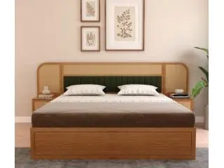 Upgrade your space with a premium king size bed crafted for comfort and style. This king size bed with storage offers ample space to keep your room clutter-free while enhancing the aesthetics with a sleek king size bed design. Built with sturdy wood, it ensures durability and elegance. Whether you call it a king size cot or a modern king bed, this piece adds royal comfort at an affordable king size bed price.