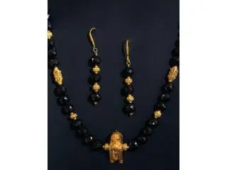 Elevate your special day with Jewel of the Lotus's Necklace and Earrings Set in Hawaii, showcasing an authentic South Indian Wedding Necklace online in 18k gold with dramatic black spinel pendant. This complete set embodies temple-inspired elegance for brides seeking traditional splendor. Shop this South Indian Wedding Necklace online with confidence, backed by expert appraisal and Hawaii's finest curation for unforgettable bridal beauty.