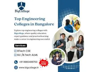 Bigcollege is the top engineering colleges in Bangalore by guiding students toward institutions that offer strong academics, modern facilities and excellent career opportunities. We focus on giving clear, reliable and updated insights to help students make informed decisions about their engineering futures. Our platform showcases colleges known for their industry oriented courses, expert faculty, advanced labs and strong placement records. We help students receive the right guidance to choose colleges that match their goals and strengths. Our focus is to support every learner with valuable information that leads to growth, success and a bright engineering career in Bangalore. Contact Bigcollege today and we will guide your academic future smartly.