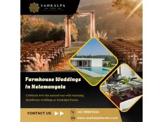 Sankalapa Farms is one of the top farmhouse weddings in Nelamangala, Bangalore. We have created a peaceful environment with a variety of greenery and fresh air. Our spacious interiors, beautiful outdoor area, and modern features make it an ideal destination for a relaxing vacation, a family celebration or just time with the family. We are committed to providing that our guests are comfortable, enjoy themselves and feel refreshed during their stay. Our goal is to create a natural, peaceful environment. Contact us Luxury and nature combine in Nelamangala's best resort.