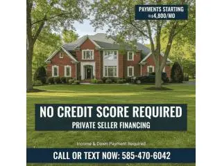 Credit score is not the deciding factor. Income and financial strength matter more. Structured seller financing available for qualified buyers. Payments typically start around $4,800/month depending on property and down payment. Income verification required. Serious inquiries only. Call or Text 5854706042