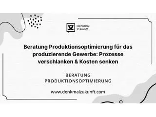 Nachhaltigkeit & Effizienz: Beratung Produktionsoptimierung für umweltbewusste UnternehmenServices - Berlin (Berlin) - January 21, 2026Steigern Sie Produktivität und Qualität mit professioneller Beratung Produktionsoptimierung. Von der Analyse über die Strategie bis zur Umsetzung begleiten wir Ihr Unternehmen praxisnah und effizient. Jetzt beraten lassen: