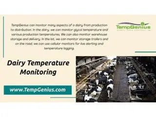 TempGenius offers state-of-the-art Dairy Temperature Monitoring Systems designed specifically for dairy farms, milk storage units, creameries, and processing facilities. Known for their precision and reliability, TempGenius solutions help you stay compliant with FDA, USDA, and HACCP regulations and protecting your product, your brand, and your bottom line. Accurate temperature control is critical in the dairy industry. Even slight fluctuations can lead to spoilage, contamination, or costly waste. TempGenius eliminates the guesswork with wireless, automated sensors that continuously monitor the temperature of milk tanks, refrigerators, pasteurizers, and cold storage units. Real-time alerts are sent directly to your phone or email the moment readings move out of the safe range, allowing for immediate corrective action. Built with rugged components for demanding environments, the TempGenius system is easy to install, scalable, and backed by robust data logging capabilities. Whether you're managing a small family dairy or a multi-site processing operation, TempGenius provides complete visibility into your cold chain performance. Third-party testing confirms the accuracy and compliance of TempGenius devices, making them a trusted choice for dairy professionals across the U.S. With customizable reporting, audit-ready records, and 24/7 support, TempGenius simplifies monitoring so you can focus on delivering fresh, high-quality dairy products to your customers. Protect your dairy operations from spoilage and ensure regulatory compliance. For more details, visit: www.tempgenius.com/dairy-temperature-monitoring/