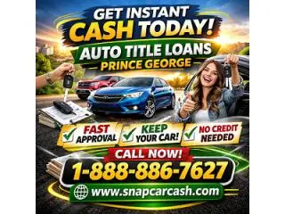 Need fast cash today? Snap Car Cash offers Auto Title Loans Prince George to help you borrow money quickly using a loan with a car as collateral. Get instant approval, no credit check, and same-day funding. Keep your car while accessing emergency cash. Easy online application, bad credit OK, flexible payments. Choose Snap Car Cash for Auto Title Loans and borrow money fast with secure, reliable, and affordable title loan solutions today.