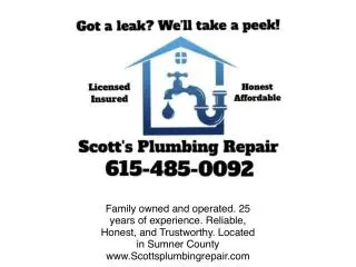 Got a Leak? Call Scott’s Plumbing Today! 615 485 0092 Taft