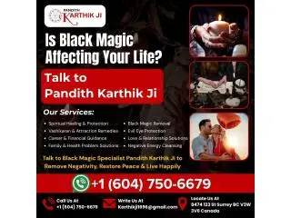 Pandith Karthik Ji is a famous Black Magic Specialist Astrologer in Vancouver, offering powerful spiritual solutions to help you overcome negativity and regain peace in your life. We have deep expertise in ancient Vedic astrology and energy healing, so we are able to identify the root causes of many problems, such as health issues, relationship conflicts, or financial difficulties that are caused by dark energies. Pandith Karthik Ji offers personalized rituals and protective methods to cleanse your aura and restore your positivity. Get true transformation with guidance from the trusted Black Magic Specialist Astrologer in Vancouver.