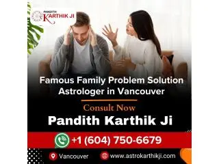 Pandith Karthik Ji is a famous family problem solution astrologer in Vancouver, who helps restore harmony and peace in homes through providing expert guidance. Our expertise in Vedic astrology allows us to offer effective solutions for issues such as marital disputes, conflicts between parents and children, property disputes, and relationship problems. We've helped countless families rebuild trust and overcome obstacles. Contact us today to consult Pandith Karthik Ji and bring positivity back into your family's life.