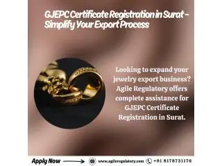 Need help with GJEPC Certificate Registration in Surat? Agile Regulatory ensures a smooth registration process for jewelry manufacturers and exporters. We handle all documentation, application, and liaison work with authorities so you can focus on expanding your business internationally.