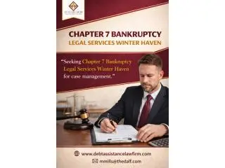 Chapter 7 Bankruptcy Legal Services Winter Haven provide comprehensive support for individuals facing overwhelming debt. These services include case evaluation, document preparation, court representation, and creditor negotiation. Legal experts also advise on exemptions and asset protection to maximize debt relief benefits. Using professional legal services reduces stress and avoids errors that can delay your case. Debt Assistance Law Firm offers trusted guidance to make the bankruptcy process manageable and effective. Contact them today to access reliable Chapter 7 legal services