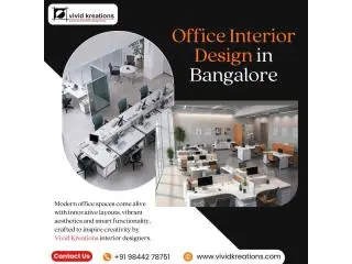 Vivid Kreations is a leading office interior design in Bangalore, designing workplaces into inspiring and functional environments. Our designer uses creativity with practicality to create spaces that reflect your brand identity and increase productivity. We understand that every office is unique, so we create customized interiors that match your vision and work culture. Our plans focus on modern aesthetics, smart space utilization and comfort to promote an engaging work atmosphere. We take pride in delivering projects with quality, innovation and focus, helping businesses optimize their workspace environment through exceptional interior design solutions. Get in touch with Vivid Kreations today to start your dream office interior project with our creative designs.