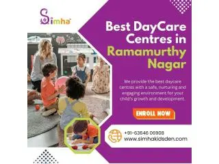 Simha Kidsden is one of the best daycare centres in Ramamurthy Nagar providing a safe, supportive, and joyful environment for young children. Our daycare environment supports overall development through structured routines, play-based activities, and interactive learning. We focus on building social skills, independence, confidence, and emotional well-being from an early age. Our caring and trained staff, small group sizes, hygienic facilities, and personal attention make each child feel secure and valued. Simha Kidsden will provide a happy, educational, and comfortable daycare experience for your child’s daily growth and care.