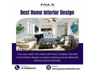 Paul’s Creation is recognized as the best home interior design company in Bangalore, offering innovative and stylish solutions that transform houses into dream homes. We specialize in crafting customized interiors that blend aesthetics with functionality, ensuring every space reflects your personality and lifestyle. Our team focuses on quality, creativity, and precision to deliver interiors that stand the test of time. We create modern apartments and luxury villas with passion and commitment. Our expertise improves the elegance, comfort, and sophistication of your living space. For unique and tailored interiors, contact Paul’s Creation today.