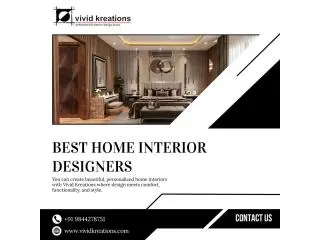 Transform your home with Vivid Kreations, the best home interior designers in Bangalore, where smart planning, creative concepts, and stylish detailing combine beautifully to create spaces that make you happy. We design personalized interiors with user-friendly layouts, space-saving solutions, and premium finishes that reflect your lifestyle and improve your comfort. We deliver the best quality workmanship, transparent pricing, and timely delivery when it comes to modular kitchens, living rooms, wardrobes, and complete home renovations. Make your dream home a reality with Vivid Kreations. Contact us today for an incredible transformation!