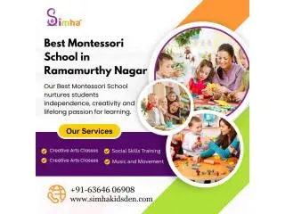 Simha Kidsden is the Best Montessori School in Ramamurthy Nagar, offering a nurturing space where children learn through exploration and creativity. We focus on holistic child development through hands-on learning, sensory activities and personalized attention. Our experienced educators guide every child to build confidence, independence, and a love of learning. Simha Kidsden provides a safe, joyful, and stimulating environment that encourages curiosity and growth. Our Montessori-based curriculum helps children develop essential life skills and strong academic foundations. Enroll your child today and give them the perfect start to a lifelong learning journey.