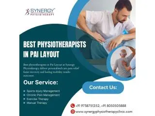 Synergy Physiotherapy provides the Best Physiotherapists in Pai Layout in your locality. We can provide you with customized diagnostics, advanced techniques and goal-oriented rehabilitation programs to help you to regain your freedom and the fun of living. We are the most preferred providers of Physiotherapy Treatment in Pai Layout due to our team's dedication to giving you the most attentive care. Synergy Physiotherapy follows patient-centered care strict guidelines and employs evidence-based interventions for treating pain, limited movement, injuries and post-surgical conditions that lead not only to speedy but also sustainable recovery. Contact Synergy Physiotherapy right now to schedule an appointment.