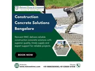 Reinvent RMC delivers premium construction concrete solutions Bangalore for residential, commercial, and industrial projects. We provide high-quality ready-mix concrete designed for strength, durability, and long-term performance. Our advanced batching technology ensures consistent quality and timely delivery for every construction requirement. Reinvent RMC focuses on accuracy, reliability, and cost-effective solutions to support builders, contractors, and developers across Bangalore. We maintain strict quality standards and create customized concrete mixes according to your project needs. Our experienced team guarantees smooth operations and dependable service from start to finish. Contact Reinvent RMC today for reliable concrete solutions in Bangalore!