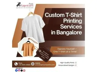 Kapricorn Prints provides excellent custom T-shirt printing services in Bangalore, delivering high-quality printed apparel for businesses, events, and personal needs. We specialize in creating customized T-shirts with vibrant prints, premium fabrics, and excellent finishing for lasting wear. Our advanced printing techniques deliver sharp designs, rich colors, and durability across all types of round-neck and custom T-shirts. We provide services related to corporate branding, promotional events, team uniforms, college festivals, and personalized fashion requirements. Our flexible customization options allow you to choose designs, logos, sizes, and styles that perfectly suit your purpose. Contact Kapricorn Prints today to get your custom T-shirt printed professionally and delivered on time.