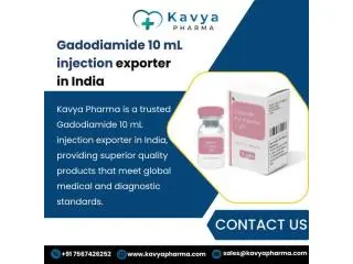 Kavya ****** is one of the top Gadodiamide 10 mL injection exporter in India, committed to delivering premium-quality ******ceutical products that adhere to global safety and efficacy standards. Our skilled team ensures each product is produced under stringent quality control and carefully packaged to preserve its purity and performance. We take pride in supplying the global healthcare industry with reliability, consistency, and excellence. Our focus is on innovation, compliance, and customer satisfaction, making us the preferred choice among medical distributors worldwide. Contact Kavya ****** today for assured quality, timely delivery, and trusted service.