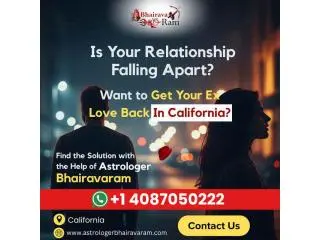 Astrologer Bhairavaram is your reliable guide to get your ex love back in California. Our astrological remedies can help restore love, harmony, and happiness after separation. We improve the environment for love by analyzing planetary influences, resolving misunderstandings, and removing negative energy. Our approach focuses on reuniting couples, healing emotional wounds, and strengthening bonds. We have already helped many people rebuild their relationships and reconnect with their loved ones through the use of our proven techniques. Contact Astrologer Bhairavaram for a brighter, love-filled future.