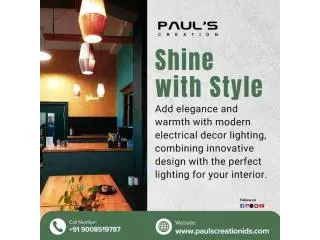 Paul’s Creation is your best choice for home interior designers in Bangalore, specializing in transforming spaces with creativity and style. We combine functionality with aesthetics, ensuring every corner of your home reflects elegance and comfort. Our team excels in electrical and decor lighting, designing solutions that brighten your interiors while adding a modern touch. We focus on personalized designs, quality materials, and seamless execution to bring your dream home to life. Our commitment to excellence ensures every project meets your expectations. Contact Paul’s Creation today to experience our expertise and let us create interiors that truly reflect your style.
