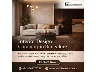Vivid Kreations is the best interior design company in Bangalore creates stylish spaces that reflect creativity, comfort and functionality. We focus on understanding lifestyles to design personal and practical interiors. Our approach combines creativity with thoughtful planning to deliver balanced spaces. We focus on quality materials, smart layouts and lasting aesthetics. Our designs support everyday living while improving their visual appeal. We work closely on every detail to maintain harmony and purpose. Our team values innovation and excellence in execution. We believe elegant interiors elevate experiences and create environments that inspire comfort, productivity and style. Contact Vivid Kreations today and take the first step toward beautifully designed spaces that meet your needs.