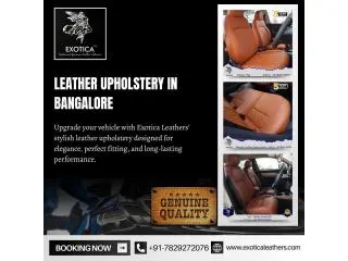 Exotica Leathers provides premium Leather Upholstery in Bangalore to upgrade your car’s interior with luxury, comfort, and durability. We use high-quality leather materials with expert design to deliver a rich finish, perfect fit, and superior support. Our upholstery solutions combine modern designs with long-lasting performance and easy maintenance. Customers can choose from customized styles and budget-friendly options without compromising on quality. Our elegant designs and attention to detail make every drive an enjoyable one for our customers at Exotica Leathers. Upgrade your car today with our premium leather upholstery solutions.