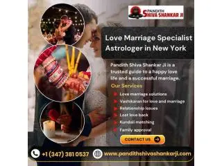 Pandith Shiva Shankar Ji is a leading love marriage specialist astrologer in New York, offering effective astrological solutions to love and relationship problems. We specialize in resolving inter-caste and family-related marriage issues through powerful Vedic remedies and personalized guidance. Our years of experience help couples overcome emotional, social, and planetary barriers, bringing peace and understanding to their relationships. We believe in creating strong bonds based on love, trust, and compatibility. Whether you’re facing delays, misunderstandings, or disapproval, we provide accurate and result-oriented solutions to unite you and your loved ones. Contact Pandith Shiva Shankar Ji today for expert love and marriage guidance.