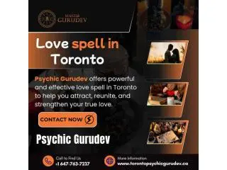Psychic Gurudev provides potent and reliable love spell services in Toronto, designed to help you reunite with your lost partner and restore emotional harmony. We focus on bringing separated couples together, strengthening love connections, and eliminating negative energies that hinder happiness. Our spiritual techniques are safe, discreet, and customized to your unique circumstances. We guide you toward love, balance, and fulfillment with years of astrological and energy healing expertise. Whether dealing with misunderstandings or distance, we offer effective spiritual solutions to reunite you with your loved ones. Contact Psychic Gurudev today for dependable and personalized love spell services in Toronto.