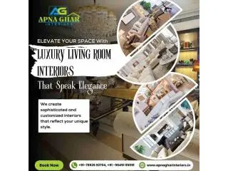 Apna Ghar Interiors specializes in luxury living room interiors in Bangalore, creating elegant and sophisticated spaces that reflect your personal style. We design each living room to balance comfort with modern aesthetics, ensuring every corner is functional and visually appealing. Our team uses premium materials and innovative layouts to maximize space and enhance the overall ambiance. We focus on details like lighting, furniture placement, and décor elements to craft a truly luxurious experience. Our commitment to quality ensures long-lasting beauty and style for your home. Contact Apna Ghar Interiors today and let us bring your dream luxury living room to life.