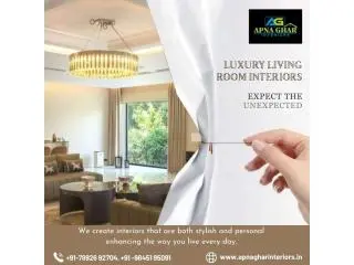 Apna Ghar Interiors offers luxury living room interiors in Bangalore, crafting spaces that effortlessly combine sophistication with comfort. We create living rooms that mirror your personal style while including contemporary trends and timeless design elements. Our team carefully selects a high-quality material, premium furnishings, and smart layouts to maximize both beauty and functionality. We make sure every part of your living area radiates warmth and elegance. Our experts collaborate with you to customize every detail, from lighting schemes to decor accents. We are committed to delivering designs that are exceptional in style, practicality, and durability. Get in touch with Apna Ghar Interiors today and transform your living room into a luxurious haven.