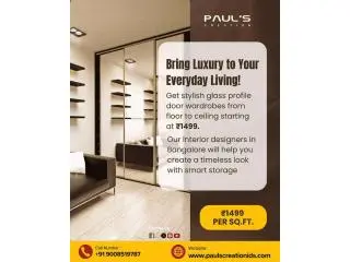 Paul’s Creation brings you skilled residential interior designers in Bangalore who craft stylish, functional, and personalized spaces that elevate everyday living. Our expert team redesigns every part of your home with contemporary concepts, smart storage ideas, and premium-quality finishes. We ensure your interiors reflect your preferences and lifestyle with a strong focus on comfort, elegance, and usability. Our home transformation services range from planning, designing, and executing to complete execution. We work closely with you to turn your vision into reality using creativity and precision. Contact Paul’s Creation today for stunning, long-lasting interiors.