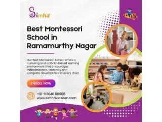 Simha Kidsden is proud to be recognized as one of the top Montessori schools in Ramamurthy Nagar and is committed to providing a positive and child-centered learning environment. Our classrooms encourage independent exploration, practical life skills, sensorial development, and hands-on learning that encourages curiosity. Our Montessori educators support emotional, social, and academic growth at every stage of the learning process through structured routines, engaging learning materials, and personalized guidance. Our students gain self-confidence, concentration, communication skills, and self-discipline at their own pace. Choose Simha Kidsden for complete development and a joyful start to your child’s educational journey.