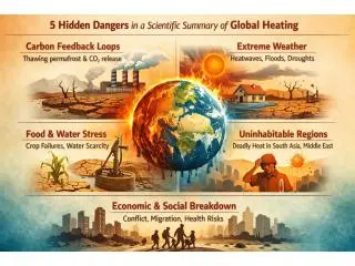 summary of global warming - Global warming refers to the rise in Earth's average surface temperature. It is primarily due to increased greenhouse gases like carbon dioxide, methane, and nitrous oxide in the atmosphere. These gases trap heat, leading to changes in weather patterns, melting ice caps, rising sea levels, and extreme weather events. Human activities such as burning fossil fuels, deforestation, and industrial processes are major contributors. The impacts of global warming affect ecosystems, wildlife, and human communities worldwide. But amplifying feedbacks triggered by the greenhouse gases - darkening Earth from melting ice and snow, reduced sulfur emissions, and fewer clouds - account for much of the warming and will account for more than half of it in years to come. Addressing this challenge requires reducing emissions, transitioning to renewable energy, adopting sustainable practices, removing greenhouse gases from the air, and counteracting the darkening of Earth as it loses ice, snow, sulfate aerosols and some of its cloud cover.