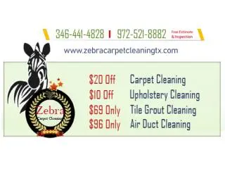 If you're tired of dealing with below average workers who do not worry about your problems, make sure to visit Zebra Carpet Cleaning League City TX. 346-441-4828 Mon to Fri: 7 AM To 6 PM Sat & Sun: 9 AM To 6 PM 184 Gulf Fwy, League City, TX 77573 https://zebracarpetcleaningtx.com/ Special Offers $20 Off Carpet Cleaning $10 Off Upholstery Cleaning $69 Only Tile Grout Cleaning $96 Only Air Duct Cleaning Our Services Carpet Cleaning, Steam Cleaning, Upholstery Cleaning Services, Stain Removal, Couch Cleaning, Furniture Cleaning Service, Steam Tile & Grout Cleaner Payment Cash, Mastercard, ****, American Express
